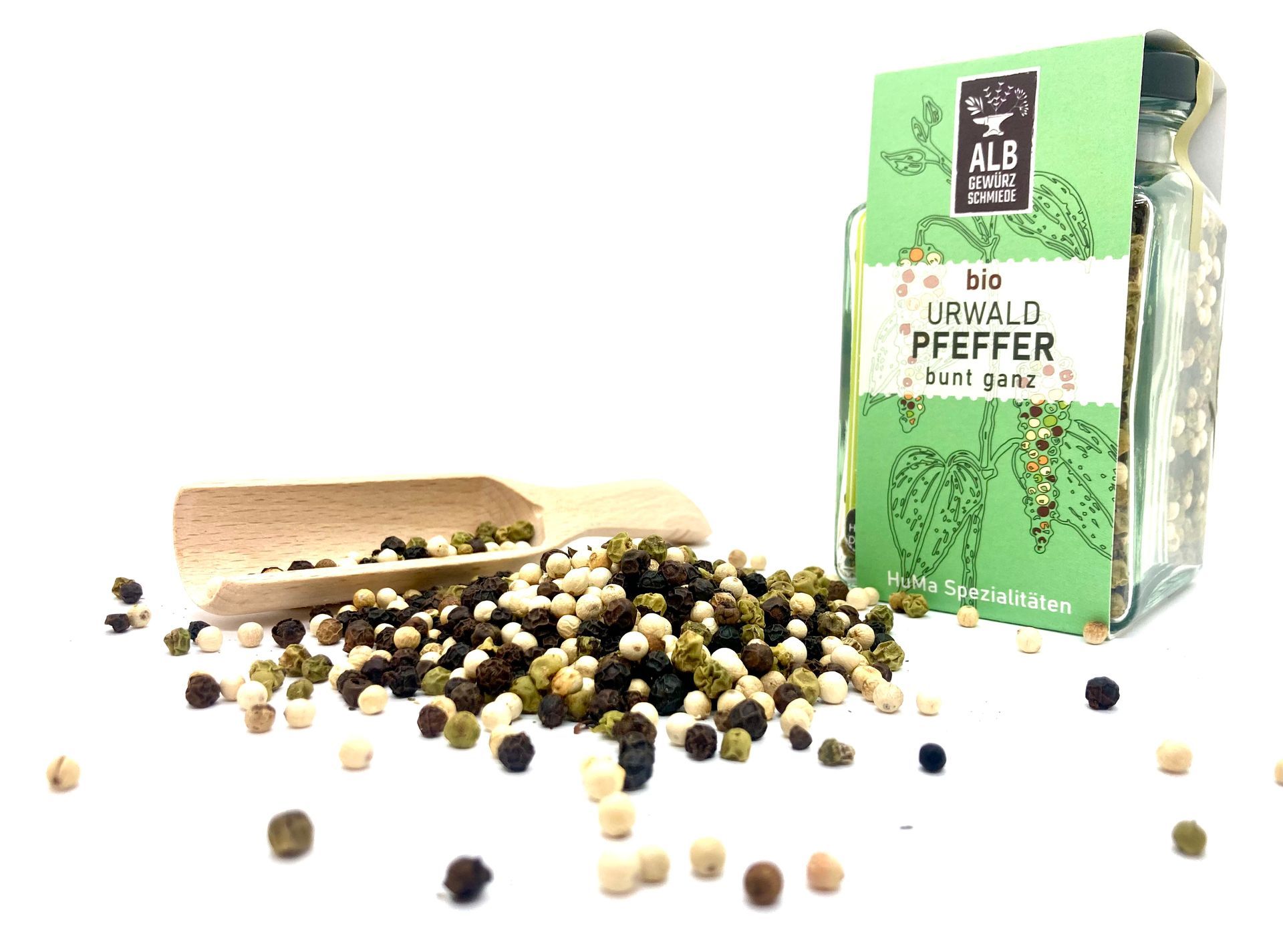 Die beim Bio-Rauchpfeffer verwendeten Pfefferkörner sind feinster Qualität aus rein ökologischem Anbau. Sie werden nach einem von uns entwickelten Verfahren mild geräuchert, von Hand abgemischt und dann zu bestem Bio-Rauchpfeffer geschrotet.