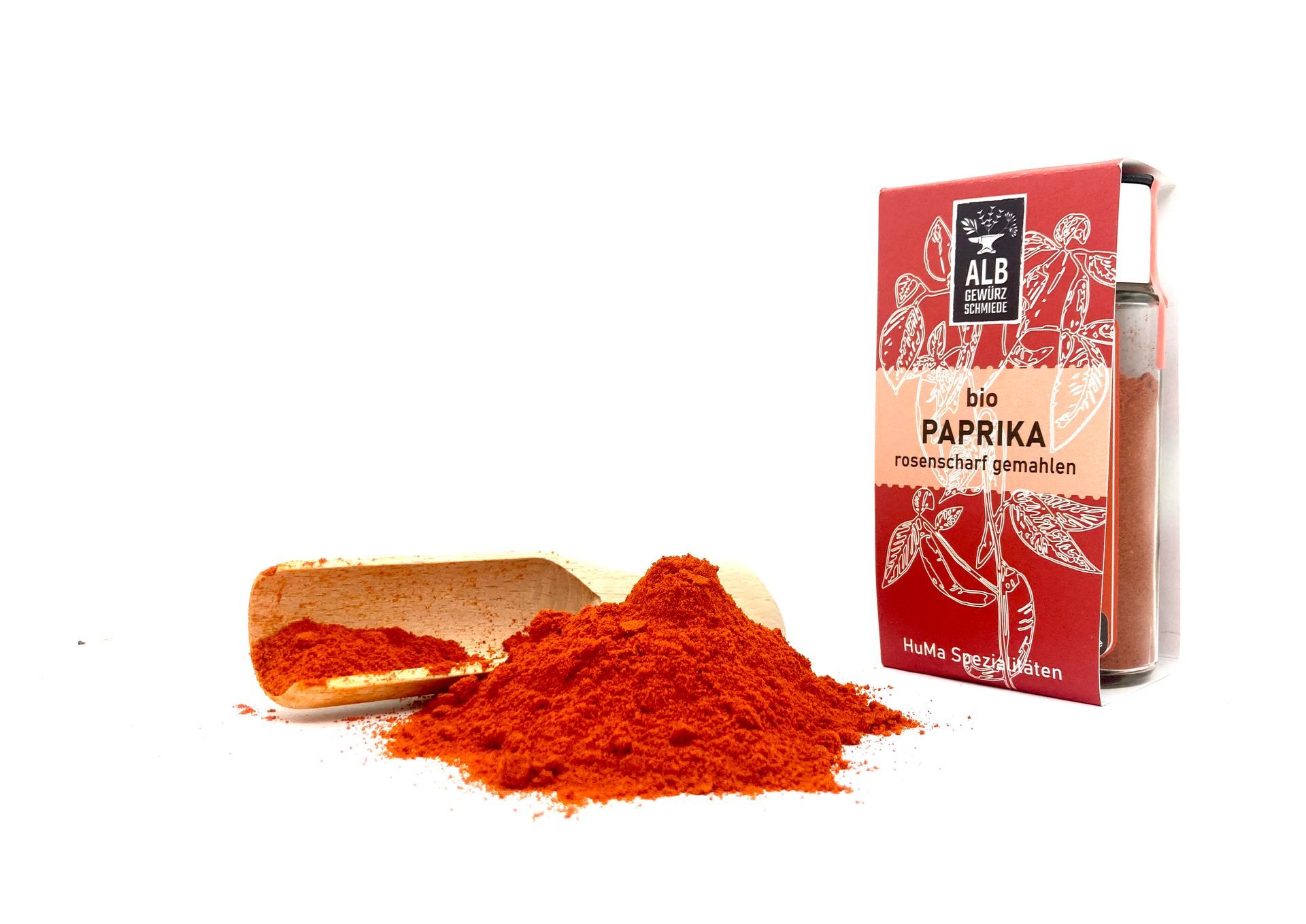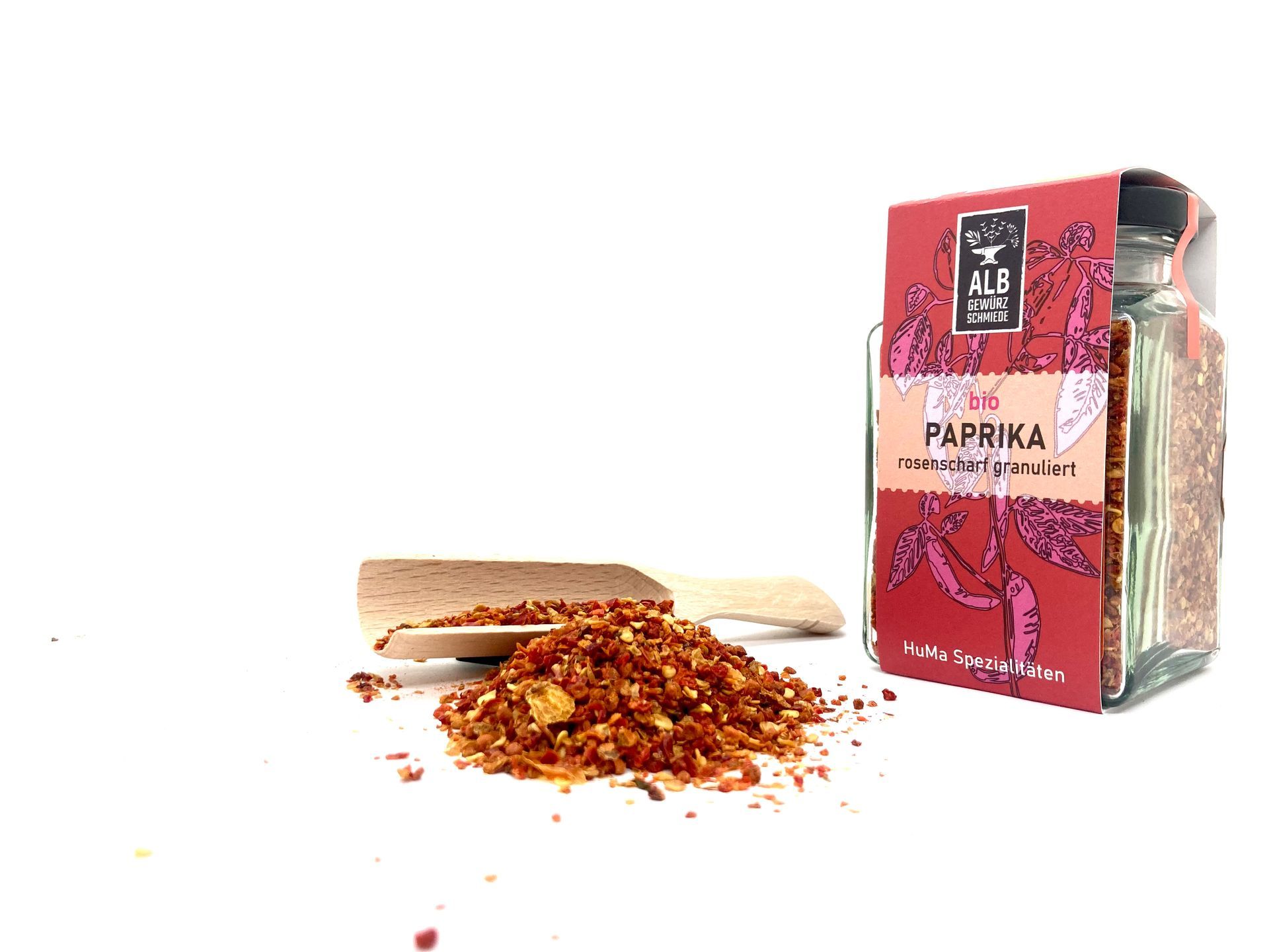 Der rosenscharfe Paprika ist deutlich schärfer als der edelsüße, aber immer noch milder und süßlicher als Chilli.